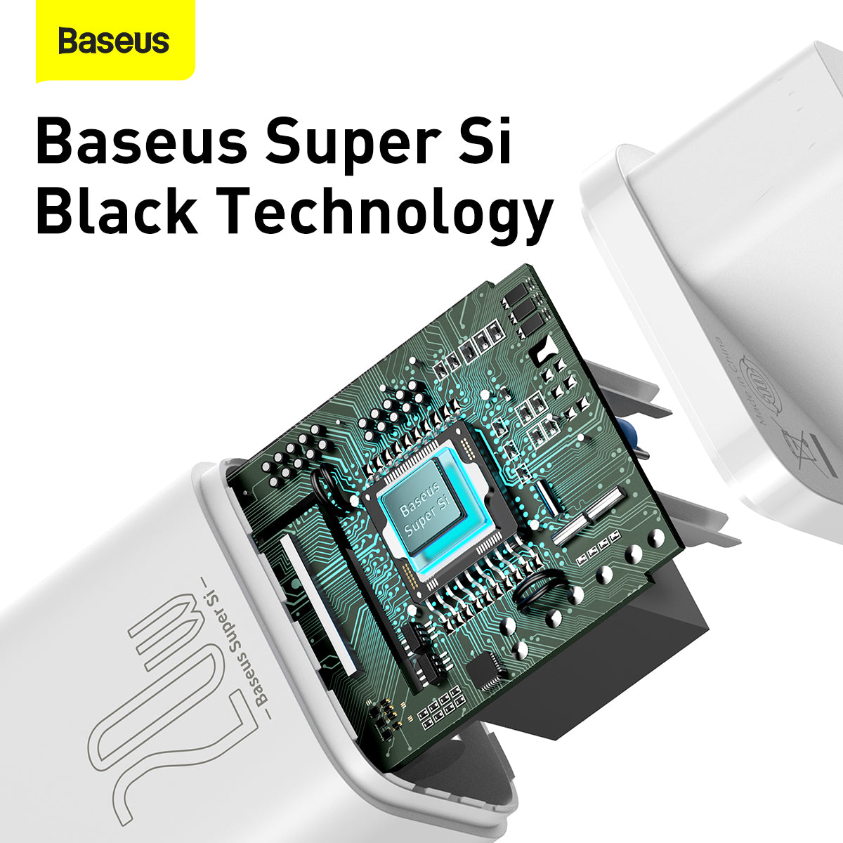 Nabíječka do sítě Baseus Super Si 20W s kabelem USB-C/Lightning 1m, 1xUSB-C bílá