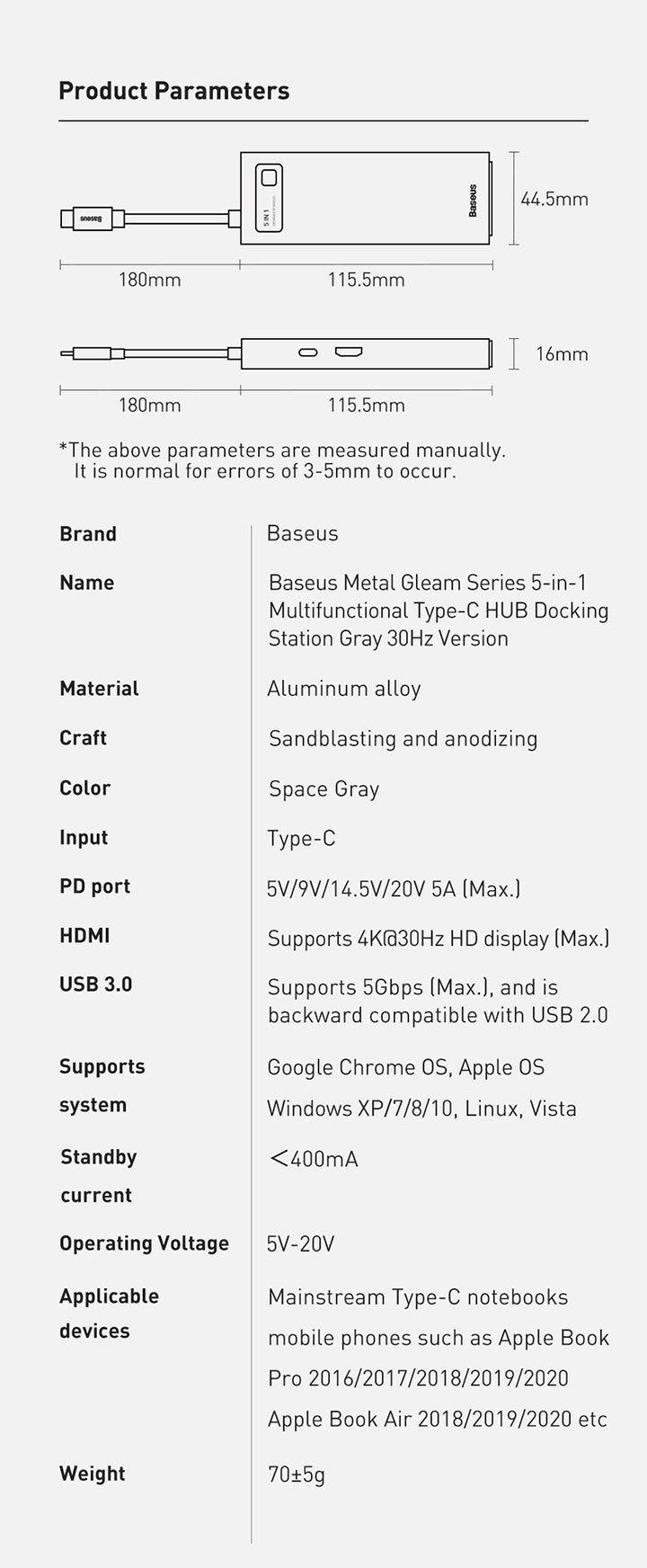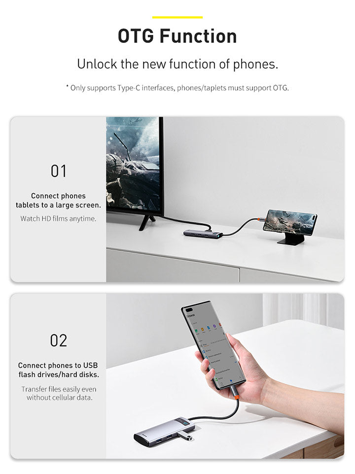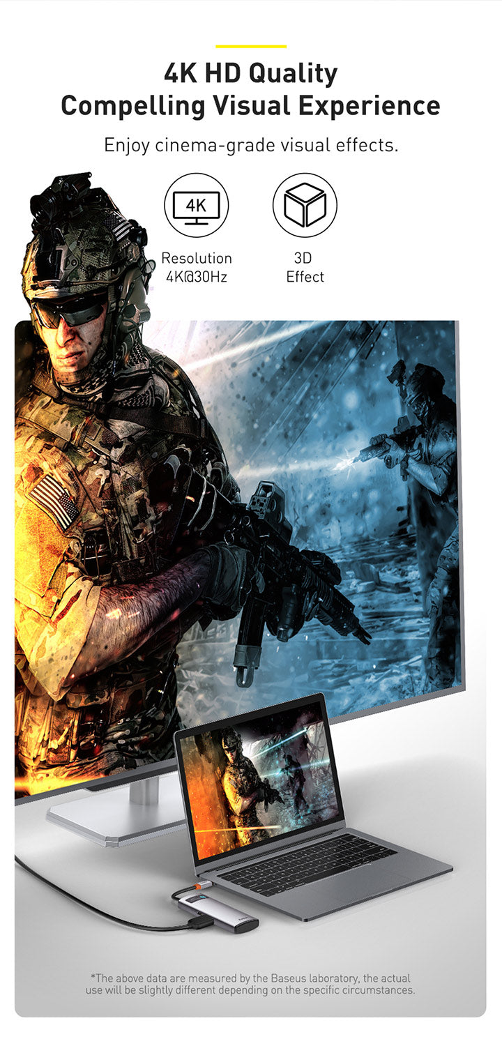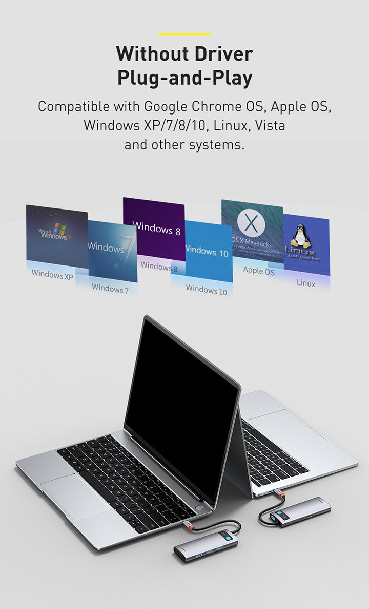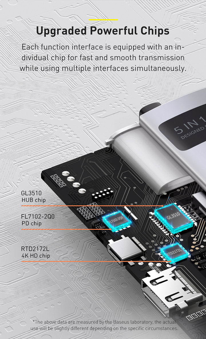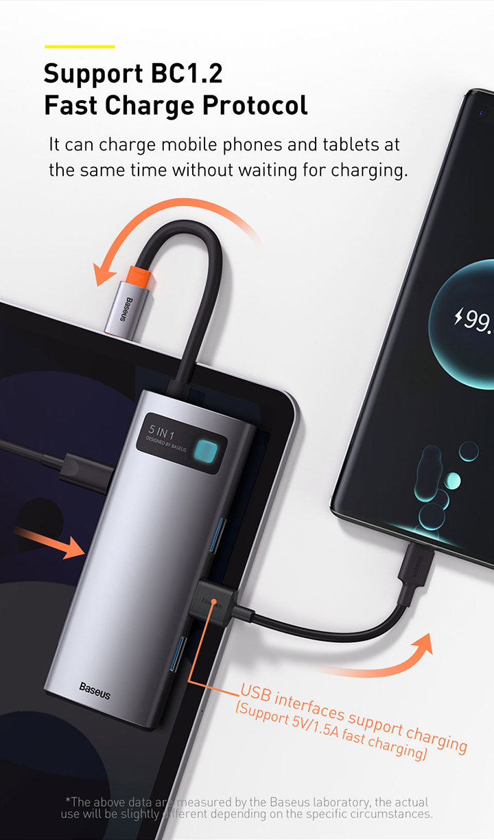 Baseus Metal Gleam je praktický náboj, který výrazně rozšíří portovou připravenost notebooku. Připojuje se prostřednictvím USB‑C a nabízí 5 portů: 3× USB 3.0, 1× USB‑C s podporou Power Delivery a 1× HDMI výstup pro propojení s projektorem nebo externím monitorem. Díky modernímu rozhraní USB‑C je vhodný pro většinu současných notebooků a umožňuje současné napájení a připojení periferií. Kompaktní a snadno přenosný, ideální na cestách i na pracovním stole pro prezentaci, videohovory a rozšíření pracovního prostoru.