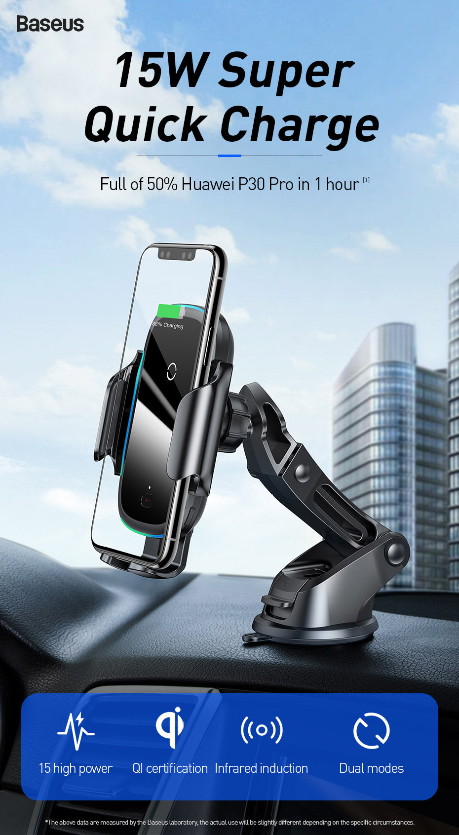 Držák do auta s bezdrátovým nabíjením Baseus s přísavkou černý